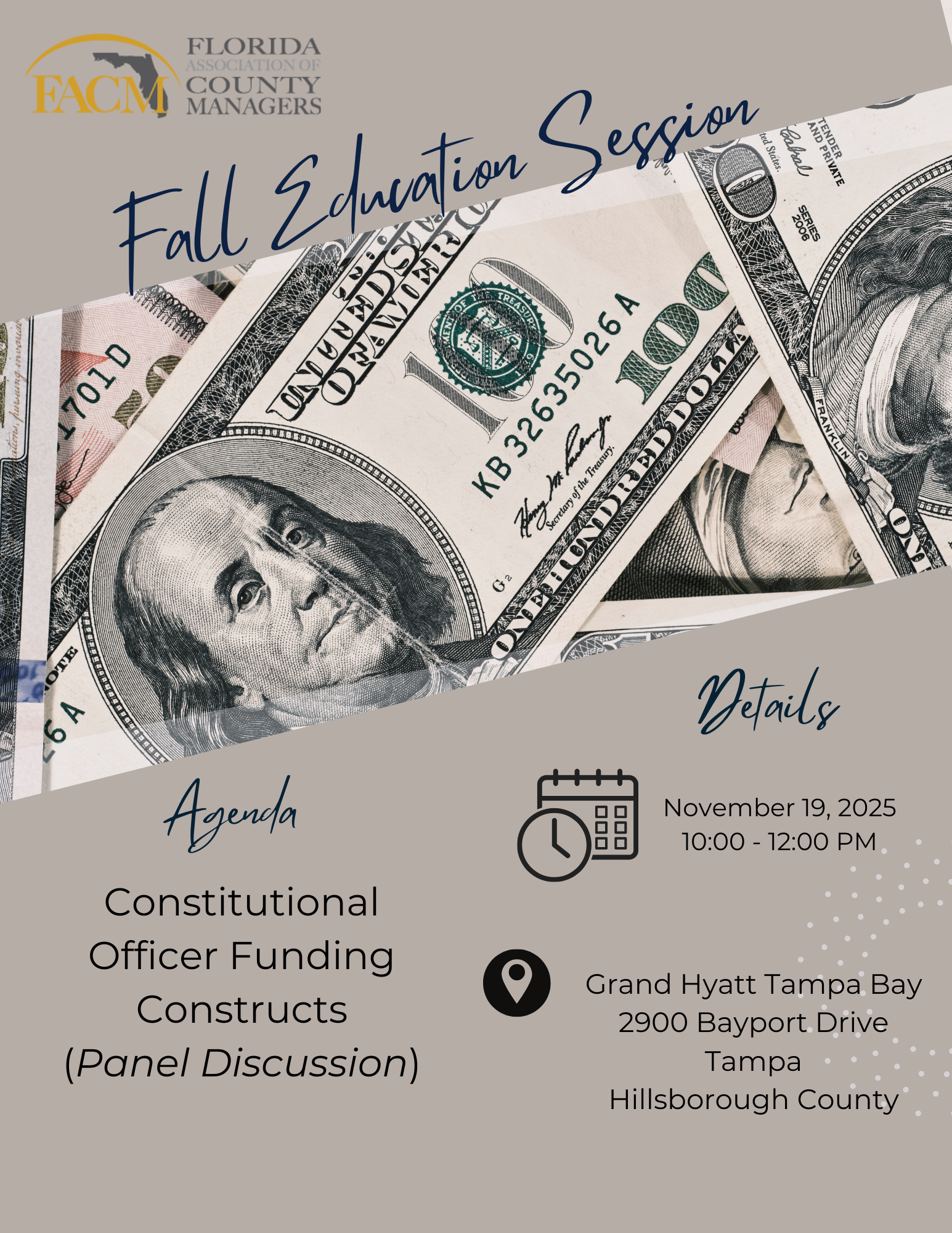 The session will explore The Constitutional Officer Funding Constructs (Panel Discussion). The Education Program is only available to FACM members. To view the Snapshot Agenda for this year’s session, please click HERE. To register for the 2025 FACM Fall Education Session, please click HERE.